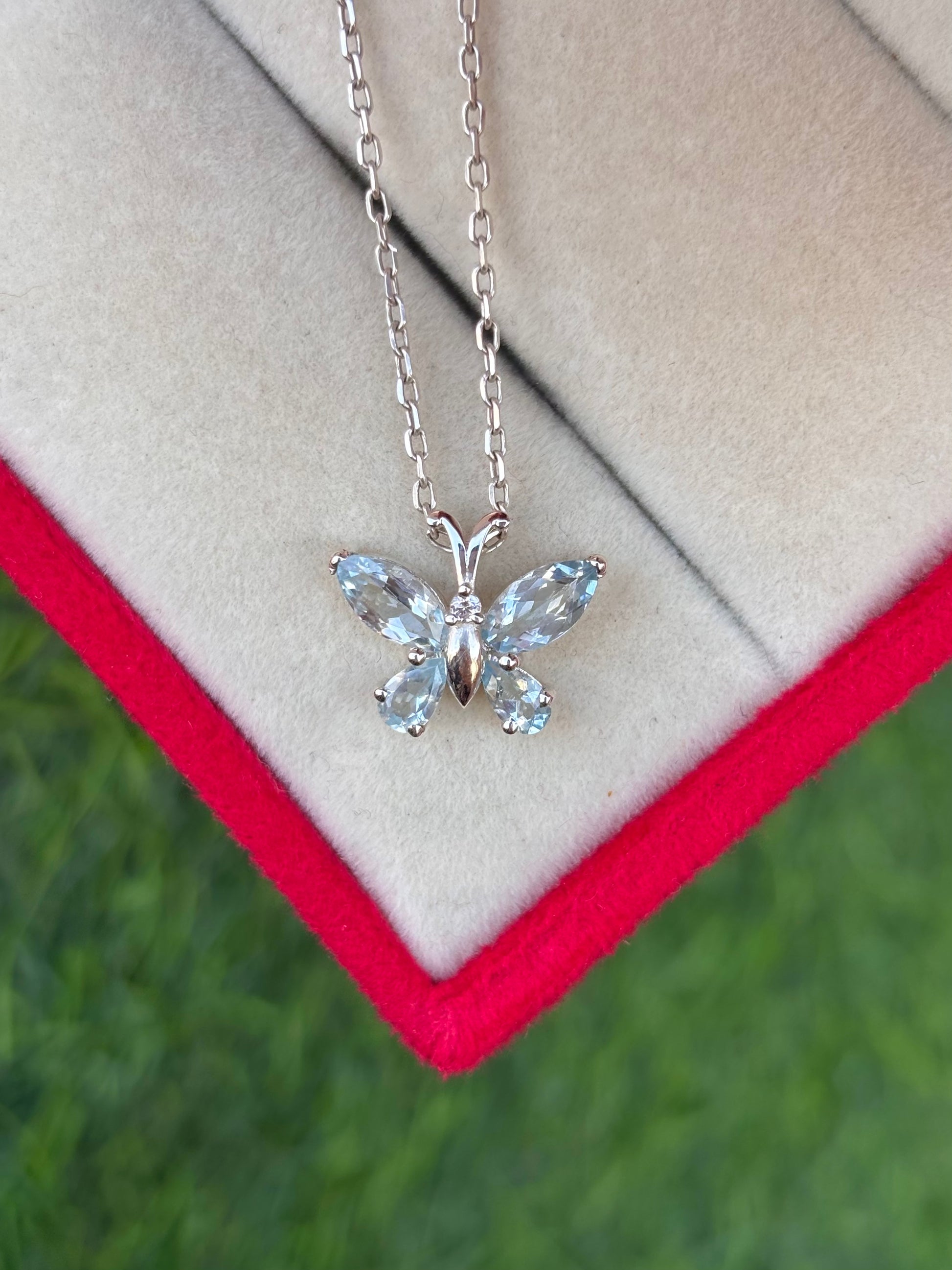 💙 Aquamarine Butterfly Pendant in 92.5 Sterling Silver | Elegant & Timeless