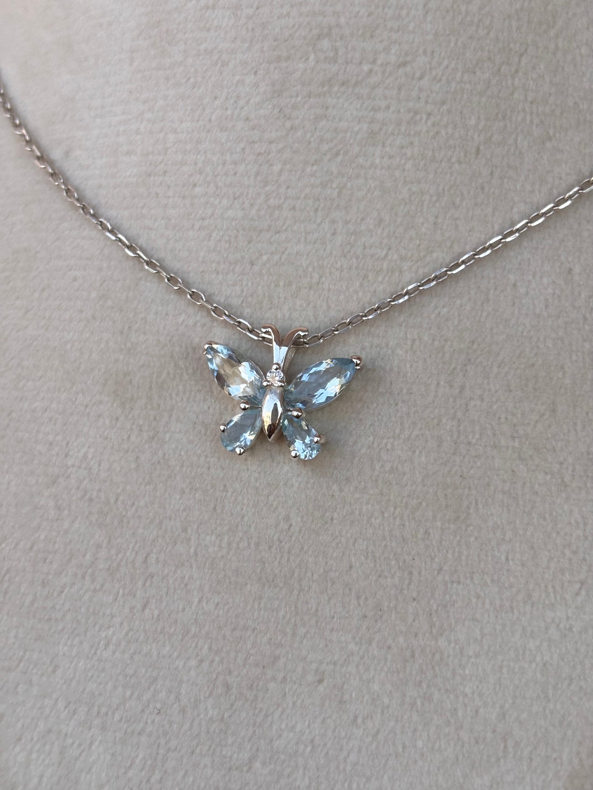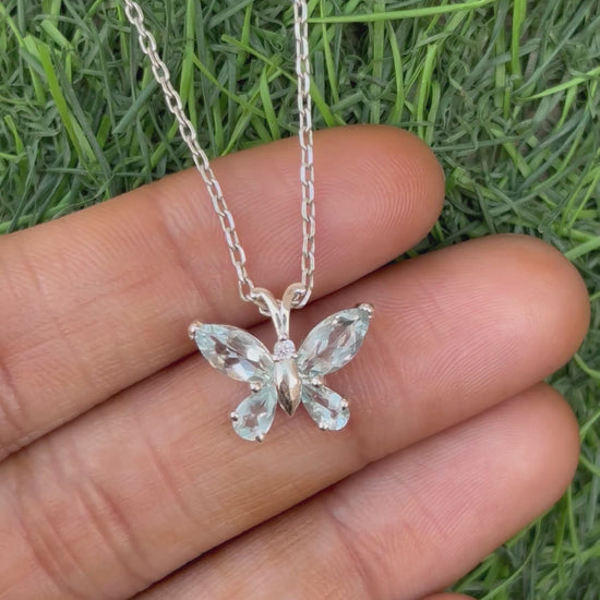 Aquamarine Butterfly Necklace in 92.5 Sterling Silver