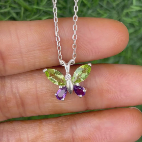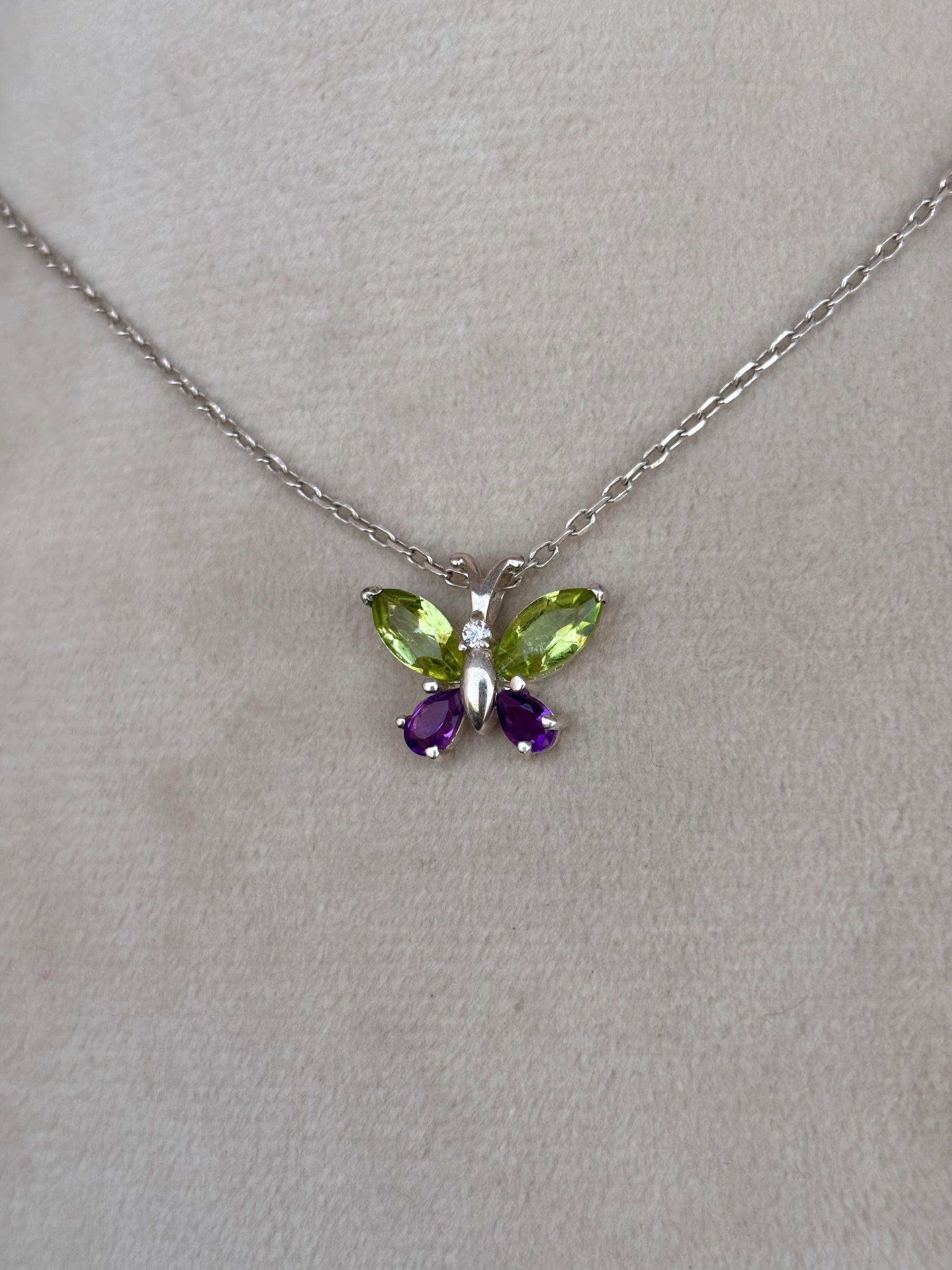 Peridot And Amethyst Butterfly Necklace in 92.5 Sterling Silver