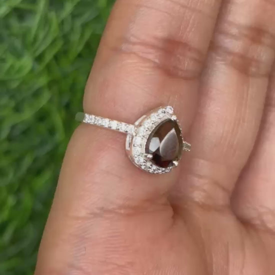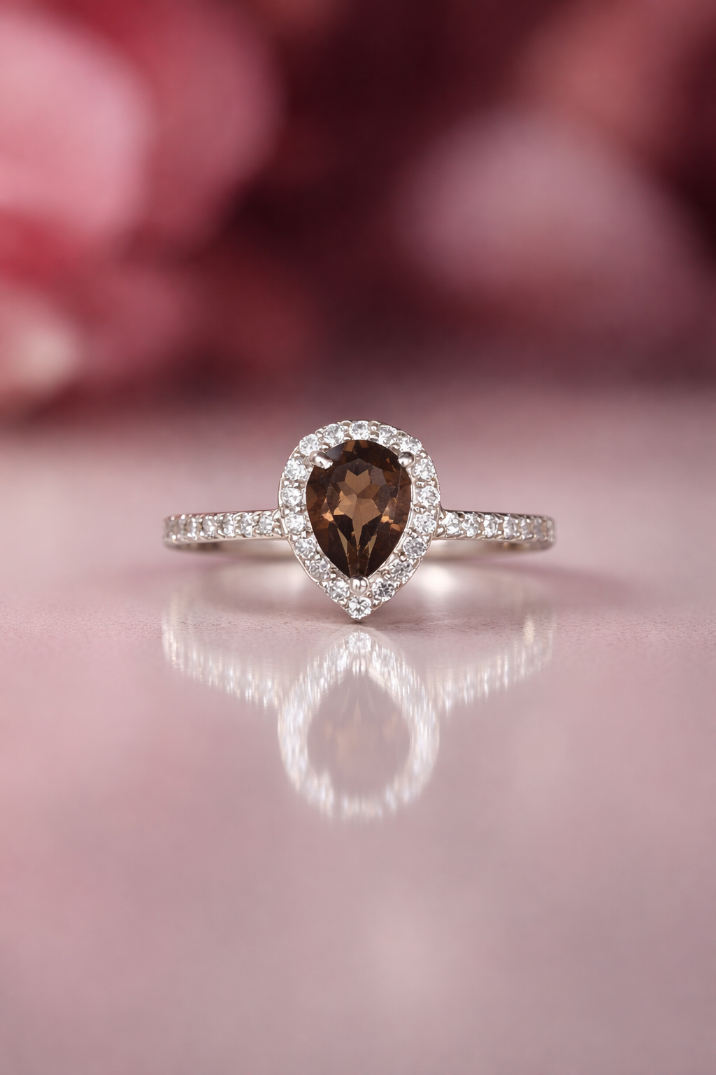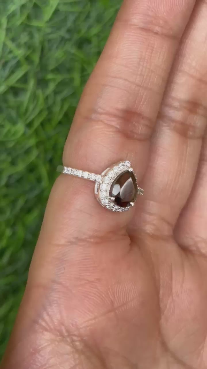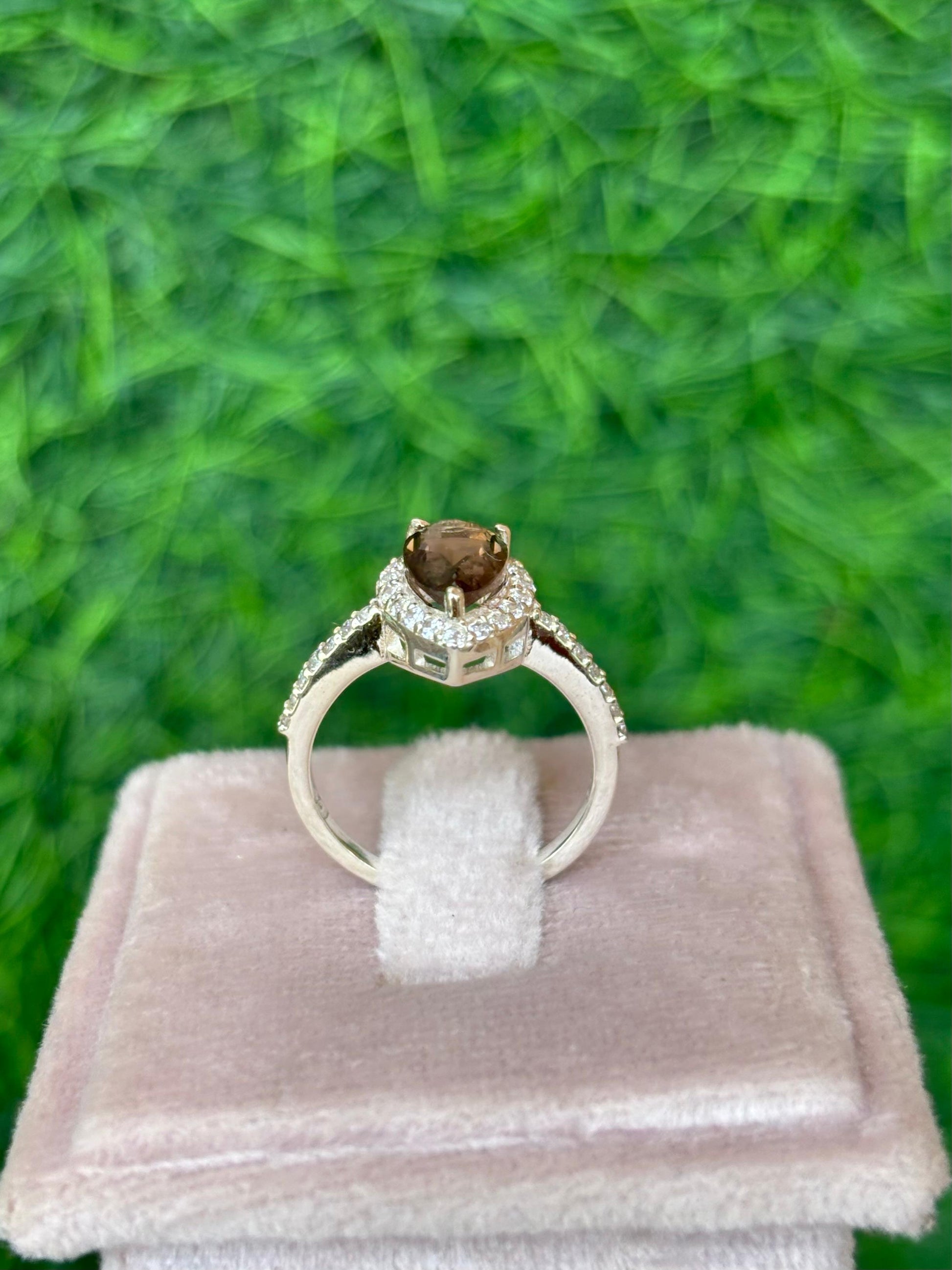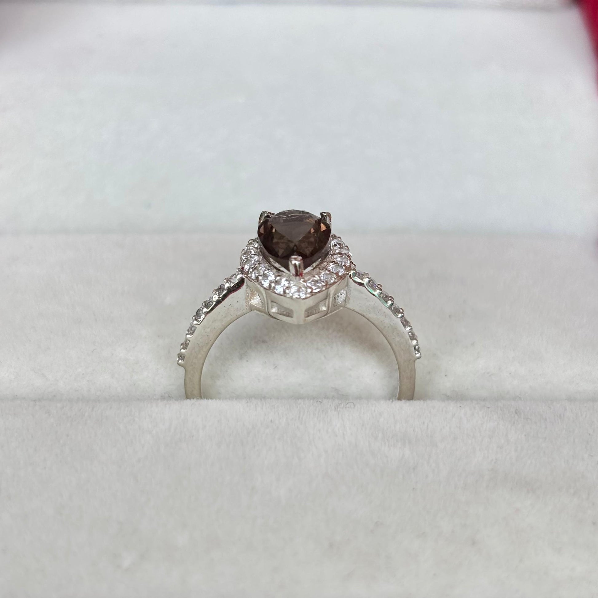 Smoky Quartz Pear Halo Ring in 92.5 Sterling Silver
